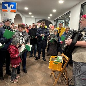 Das diesjährige Weihnachtssingen mit Ernst Schusser, ehemaliger Volksmusikpfleger des Bezirks Oberbayern, und Eva Bruckner war wieder ein voller Erfolg. Rund 100 Menschen kamen am Dienstag um 18 Uhr unter den Arkaden vor der VR-Bank zum „Weihnachtslieder selber singen“ zusammen. Dabei stimmten sie Klassiker wie „Leise rieselt der Schnee“, „Kommet ihr Hirten“ und „Alle Jahre wieder“ an.