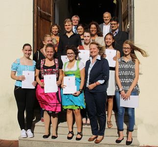 In ihrer Ansprache betonte die Bürgermeisterin die tolle Leistung aller Geehrten, aber auch deren Lehrerinnen und Lehrern und Eltern. Sie unterstrich, dass von Seiten der Stadt viel für eine gute Ausbildung der Jugend getan wird. Bei der Überreichung der Urkunden, fragte Bürgermeisterin Zollner die Geehrten nach ihren Zukunftsplänen. Besonders freute sie sich darüber, dass einige junge Frauen für ihren weiteren Weg die mathematisch-technischen Bildungsangebote nutzen werden. Auch Schulreferent Dr. Wanka gratulierte den Absolventinnen und Absolventen. In seiner Rede betonte er, dass sie mit diesem hervorragenden Abschluss ein gutes Fundament für ihr weiteres Leben geschaffen hätten und wünschte ihnen, dass sie die richtigen Entscheidungen für ihre Berufswahl treffen mögen.