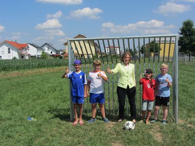 Mit einem kurzen Fußballspiel weihte Bürgermeisterin Marianne Zollner zusammen mit einigen jungen Fußballspielern den neuen Bolzplatz nördlich des Sportgeländes der Mittelschule ein. Da die Rasenfläche in städtischem Eigentum ist, konnte der Bolzplatz mit zwei Toren relativ schnell angelegt werde. Die Stadt investierte 7.460Euro.
