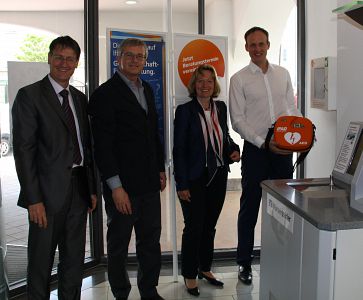 Bürgermeisterin Zollner dankt den Ärzten und Herrn Wallner von der VR-Bank für ihr Engagement und ergänzt: „Ich hoffe zwar, dass dieser Defibrillator nie zu Einsatz kommen muss, bin aber froh, dass wir ihn für den Notfall zur Verfügung haben.“