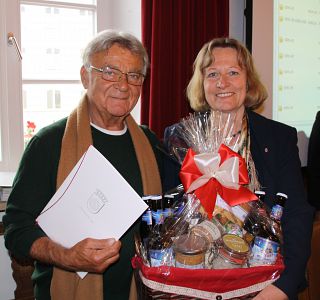 Anfang Mai konnte Benedikt Ott seinen 85ten Geburtstag feiern. Bürgermeisterin Marianne Zollner überbrachte einen Geschenkkorb und gratulierte im Namen der Stadt. Benedikt Otts Verdienste um Mühldorf sind so herausragend, dass er dafür 2009 die Bürgermedaille der Kreisstadt verliehen bekam. Unter anderem war er knapp 30 Jahre Mitglied des Stadtrats und bekleidete viele weitere Ämter und Funktionen. In seiner Zeit als Kulturreferent setzte er sich maßgeblich mit dafür ein, dass die Städtische Musikschule gegründet wurde. Auch heute noch prägt er das Mühldorfer Kulturprogramm. Seine hochkarätig besetzten Volksmusikabende im Haberkasten sind so geschätzt, dass sie bei Vorverkaufsstart für Warteschlangen vor dem Kulturbüro sorgen.