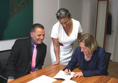 Erst vor kurzem erhielt die Kreisstadt für die Maßnahme des Breitbandausbaus im Industriepark den Förderbescheid der Regierung von Oberbayern. Nun konnte Erste Bürgermeisterin Marianne Zollner mit der Telekom den Vertrag zum Breitbandausbau unterzeichnen. De facto stehen den Unternehmen dann bis Ende 2016 statt der bisherigen 16 Mb/s 50 Mb/s download zur Verfügung.