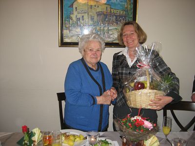 Am Samstag den 7.3.2015 feierte die Mühldorferin Berta Duschl bei guter Gesundheit zusammen mit Ihren vier Kindern, Schwiegerkindern, Enkel und Urenkel Ihren 90. Geburtstag. Die große Überraschung bei der fröhlichen Geburtstagsfeier war der Besuch von unserer Ersten Bürgermeisterin Marianne Zollner. Sie wünschte der Jubilarin im Namen der Stadt Mühldorf a. Inn alles Gute und noch viele gesunde und schöne Jahre und überreichte einen Geschenkkorb.
