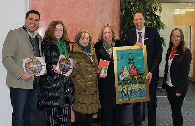 Auf Einladung der Bürgermeisterin der Kreisstadt kamen Frau Lisa Prähofer, die Witwe des Malers Hans Prähofer und ihre Tochter Gerhild zu Besuch nach Mühldorf. Unter anderem ging es bei dem Besuch um das Prähofergemälde „Inn-Elefant“, das in der Werbung für das neue Stück des Kulturschuppens: „Soliman, der Helafant“ verwendet werden soll.
