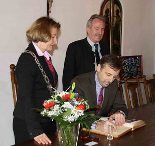 Anlässlich seines Besuchs im Landratsamt Mühldorf a. Inn kam der amerikanische Generalkonsul, Bill E. Moeller, auch zu Bürgermeisterin Marianne Zollner ins Rathaus. Als ehemalige Stadtführerin konnte sie ihm viel Interessantes über Mühldorfs Geschichte und die historischen Räumlichkeiten - wie Sitzungssaal und Hexenkammerl erzählen. Aber natürlich wurde auch die Bedeutung der Kreisstadt Mühldorf als Wirtschaftsstandort und Einkaufsmagnet für die Region erörtert. Bei dieser Gelegenheit wurde der Generalkonsul auch gebeten sich in das Goldene Buch der Stadt einzutragen.