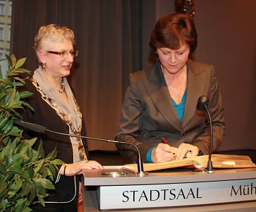 Anlässlich des Neujahrsempfangs des Wirtschaftsverbunds Mühldorf (IVM) und der Interessengemeinschaft Waldkraiburg-Aschau (IGW) kam die bayerische Staatsministerin für Wirtschaft und Medien, Energie und Technologie Frau Ilse Aigner in die Kreisstadt Mühldorf a. Inn. Für ihre Rede im Stadtsaal, in der sie die Schwerpunkte ihres Wirtschaftsprogramms vorstellte, erntete sie viel Applaus.