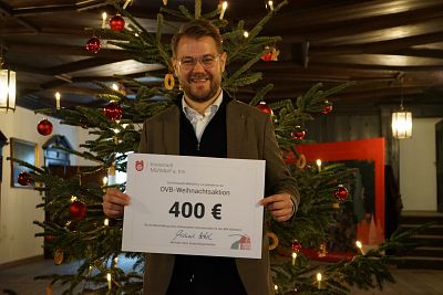 Bürgermeister Michael Hetzl nimmt Scheck über rund 5000 Euro entgegen