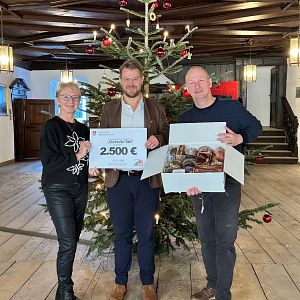 Scheckübergabe mit Bürgermeister Michael Hetzl im Rathaus