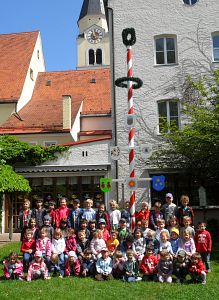 Der Kindergarten am Stadtplatz feierte dieses Jahr ein besonders schönes Frühlingsfest. Unter anderem wurde ein Maibaum in den traditionellen Mühldorfer Farben „Rot / Weiß“ im Garten des Kindergartens aufgestellt.