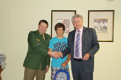 Der 14-jährige Schüler Josef Schäffler wurde von Bürgermeister Günther Knoblauch und Polizeihauptkommissar Roland Kauer im Rathaus für sein umsichtiges Verhalten belobigt.