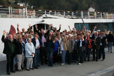 Auf der Fahrt, bei herrlichem Wetter durch die Wachau gab es für die 140 Gäste der „A-rosa Bella“ einen Leckerbissen zu hören. Die „Mühldorfer Wirtshausmusik“ mit den Familien Albert und Keil gab der Fahrt eine besondere musikalische Note. Auf dem ‚Achterdeck" wurde mit der Diadonischen, der Harfe, der Gitarre und dem Hackbrett aufgespielt.