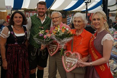 Maria Prechsl war mit 95 Jahren die älteste Besucherin, Josef Schreiner mit 96 Jahren der älteste Besucher des Seniorennachmittags. Beide erhielten von Bürgermeister Michael Hetzl einen Blumenstrauß und ein Volksfestherzerl. Tolle Präsente gab es im Anschluss bei der traditionellen Verlosung zu gewinnen – darunter 35 Geschenkkörbe von Unternehmen und Behörden sowie von politischen Parteien, Fraktionen und Personen.