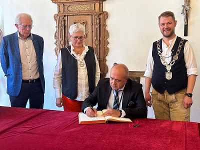 Mit einem kleinen Festakt hat Bürgermeister Michael Hetzl eine Delegation aus Iraklio empfangen. Im Rathaus begrüßte er die Gäste aus Griechenland, die zur Feier der seit 20 Jahren bestehenden Partnerschaft der beiden Städte angereist waren. Um dieses Jubiläum gebührend zu würdigen, trug sich Bürgermeister Nikos Babalos feierlich in das Goldene Buch der Stadt ein. Beim Internationalen Schützen- und Trachtenumzug im Rahmen des Traditionsvolksfestes steht ein Auftritt der mitangereisten Tanzgruppe auf dem Programm.