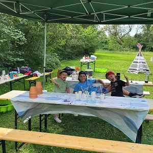 Vier- bis Achtjährige gestalteten Tontöpfe und spielten Entdecker