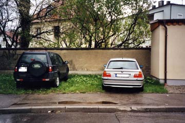In letzter Zeit greift eine Unsitte immer mehr um sich: die Rede ist vom wilden Parken in städtischen Grünflächen. Fahrzeuge aller Art sind häufig ein Hindernis bei den Mäharbeiten, verursachen Spurrillen, Verdichtungen und beschädigen die Grasnarbe, stellenweise sogar die Leistensteine (wie untenstehendes Bild zeigt).