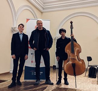 Neben der „Sonatine“ für Kontrabass und Klavier von Bertold Hummel standen das "Andante" von Robert Fuchs und das Werk "Kobolds" von François Rabbath in einer Bearbeitung für Kontrabass und Klavier auf dem Wertungsprogramm. Mit 21 von 25 möglichen Punkten setzten sich Maximilian Höfer und Ianto Hien auch vor das andere Duo mit Kontrabass.