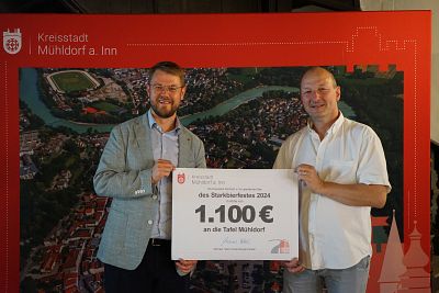 Die Mühldorfer Tafel darf sich über eine Spende in Höhe von 1100 Euro freuen. Bürgermeister Michael Hetzl übergab im Rathaus den symbolischen Scheck an Detlef Künzel, den Leiter der Tafel. Das Geld wurde beim Starkbierfest gesammelt, das die Kreisstadt Mühldorf a. Inn in Zusammenarbeit mit der Feuerwehr Mößling veranstaltet hat.