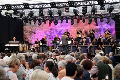 Glenn Miller, Count Basie, Sammy Nestico und viele weitere Arrangements legt die 20-köpfige Bigband unter ihrem Bandleader Fritz Killermann zum Ausklang des Sommerfestivals 2024 auf und lässt die Besucher aufhorchen, wie wohlig schön und ansprechend Bigbandmusik sein kann.