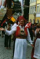 Einer der Höhepunkte des Mühldorfer Traditionsvolksfestes ist der Internationale Schützen- und Trachtenzug am 08.09.2002. Auftakt ist der Empfang der auswärtigen Gruppen vor dem Rathaus, wo sich bereits um 10.30 Uhr viele der Gruppen kurz vorstellen und die Zuschauer mit Tänzen und Musikstücken aus ihrer Heimat erfreuen.