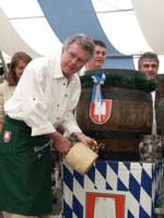 In Anwesenheit von Bundesbildungsmisisterin Bulmahn, MdB Schurer, Landrat Huber sowie weiteren geladenen Festgästen zapfte Erster Bürgermeister Günther Knoblauch die erste Maß Volksfestbier im Spaten-Festzelt an. Also: Auf geht' s zum Mühldorfer Volksfest!