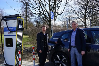 Am Stadtwall gegenüber vom Haberkasten haben Bürgermeister Michael Hetzl und Stadtwerke-Geschäftsführer Alfred Lehmann einen neuen Ladepark für Elektroautos in Betrieb genommen. An drei Säulen sind insgesamt sechs Ladepunkte entstanden: vier mit 22 Kilowatt Leistung für entspanntes Laden, dazu zwei superschnelle Ladepunkte mit 150 Kilowatt Leistung. Diese so genannten Hypercharger laden E-Autos in meist unter einer Stunde voll.