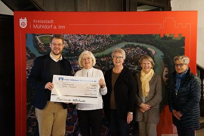 Der Katholische Frauenbund hat dem Mühldorfer Hilfsfonds 1000 Euro gespendet – verbunden mit einer symbolischen Spendenübergabe im Rathaus. Bürgermeister Michael Hetzl empfing Johanna Unterreithmeier als 1. Vorsitzende des Zweigvereins Mühldorf sowie Hildegard Schmid, Maria Buchberger und Otti Ruhland als weitere Mitglieder des Leitungsteams sehr gerne. „Ich bedanke mich im Namen der Kreisstadt Mühldorf a. Inn sehr herzlich für diese großzügige Spende“, so der Bürgermeister. „Das Geld kommt bedürftigen Mühldorferinnen und Mühldorfern zu Gute, so wie es bei unserem Hilfsfonds immer der Fall ist. Spenden sind uns das ganze Jahr über willkommen – nicht nur in der Weihnachtszeit.“