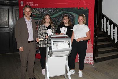 Die Gewinner des Mühlix-Rätsels stehen fest. Rund 75 Kinder hatten korrekt ausgefüllte Antwortkarten an das städtische Jugendzentrum M24 gesendet und damit die Chance auf einen der drei Preise. Bei der Verlosung erhielten Clarissa Englberger und Clara Seidl vom Jugendzentrum und Bürgermeister Michael Hetzl Unterstützung von Losfee Vanessa Rietz, die derzeit im Rathaus eine Ausbildung macht. Ein 100-Euro-Gutschein für einen Kindergeburtstag geht an Maximilian Skrojek. Er kann seinen ersten Preis im Bowling-Center Top Bowl in Neuötting einlösen. Leo Hausner darf sich auf eine Wertkarte der Stadtwerke über 50 Euro für Schwimmbadbesuche freuen. Den dritten Preis gewann Emelie Stele: einen Geschenkkorb vom Globus Mühldorf im Wert von 40 Euro. „Herzlichen Glückwunsch im Namen der Stadtverwaltung an alle Gewinner“, so Bürgermeister Hetzl.