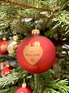 In diesem Jahr gibt es schon das vierte Sammlerstück der Christbaumkugel aus Mühldorf a. Inn. Dieses Mal zeigt das Motiv die Kirchtürme der Nikolaus- und Frauenkirche sowie den Nagelschmiedturm mit seiner wehenden Fahne über dem „Mein Mühldorf“ Herz. Zudem erhältlich sind auch die silbernen Kugeln mit der Mühldorfer Skyline sowie die Christbaumkugeln aus den Vorjahren.