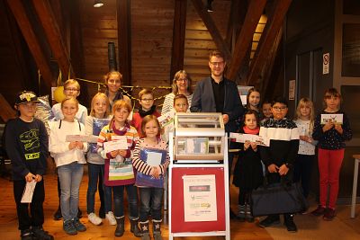 Unter allen TeilnehmerInnen hat die Stadtbücherei drei Preise verlost, welche von Mühldorfs 1. Bürgermeister Michael Hetzl und der Leitung der Stadtbücherei, Frau Regina Kaiser, an die Kinder übergeben wurden. Über ein Grundschullexikon dürfen sich Bastian Petz, Julian Pauli und Emilia freuen.