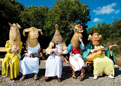 Kaum zu glauben, aber es gibt immer noch kleine Nischen innerhalb der irischen Volksmusik, die bisher noch nicht entdeckt worden sind. Mumming ist eine davon. Mumming ist eine Art Volkstheater. Die Darsteller tragen aus Weidezweigen kunstvoll gefertigte Masken. Die überdimensionalen Masken sind Tierköpfe wie Pferd, Schwein, Rind oder Ziege und lassen ihre Träger wie Riesen erscheinen. Dazu ziehen sich die Darsteller, die Mummers genannt werden, Kostüme aus Lumpen an. Ein Mummer ist wegen seiner Größe eine imposante, ja sogar furchteinflößende Erscheinung. Er erinnert an die Hexen wie man sie aus der alemannischen Fastnacht kennt. Die Mummers vollführen einen Riesen-Hokuspokus, der den Anwesenden unter die Haut geht. Sie setzen einen Scat-ähnlichen Sprechgesang ein, lärmen mit Rasseln, bimmeln mit Schellen und spielen auf ihren Instrumenten. Es gibt aber auch mystische und spirituelle Elemente, die auf über zweitausend Jahre alte Bräuche zurückgehen. Da wirken die Mummers wie keltische Schamanen und Voodoo-Priester. Das IFF freut sich außerordentlich, diese Rarität endlich auf Tour zu bringen. Vor genau fünf Jahren waren sie schon mal als Trio da und weil es so vielversprechend war, kommen sie jetzt als Quintett.