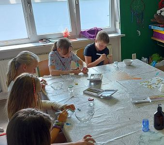 Im Rahmen des Mühlix-Ferienprogramms hatten dieses Jahr 18 Mädchen und Jungen im Alter von 10 – 16 Jahren die Möglichkeit, im Mühldorfer Jugendzentrum M24 eigenes Hautöl sowie Zahnpasta herzustellen. Hierzu erhielt jedes Kind zwei Gläser, die sie nach Lust und Laune im Kreativraum beschriften und gestalten durften. Bevor der Hauptteil des Workshops begann, wurde ausführlich über die Vorteile von Naturkosmetik gesprochen und erläutert wie einfach es ist, auf konventionelle Produkte zu verzichten. In Zeiten des Klimawandels ist dies ein wichtiges Thema. Das Angebot kam sehr gut an und auch die Rezepte für die hergestellten Produkte wurden eifrig für die Zubereitung zu Hause mitgenommen.
