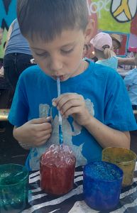 Bereits Kinder im Alter von drei Jahren hatten dieses Jahr im Rahmen des Ferienprogramm Mühlix die Möglichkeit im Mühldorfer Jugendzentrum M24 tolle Kunstwerke mit bunten Blubberblasen zu gestalten. Den Teilnehmerinnen und Teilnehmern stand eine Vielzahl an umweltverträglichen und ungiftigen Farben zur Verfügung. Mit Strohhalmen konnten sie nach Lust und Laune große oder kleine Blasen „blubbern“ und so verschiedene, zur Verfügung stehende Papierarten damit verzieren. Darüber hinaus erhielt jedes Kind einen Becher Seifenblasen, mit welchem am Ende auch noch wunderschöne Farbexperimente durchgeführt wurden. Ein bunter Zauber lag in der Luft. „Farblos“ nach Hause, kam nach dieser Veranstaltung niemand.