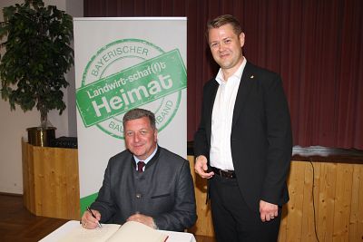 Mühldorf a. Inn. Auf Einladung des Mühldorfer Bauernverbandes besuchte vor kurzem Bayerns Staatsnminister für Wohnen, Bau und Verkehr, Christian Bernreiter, den Hof von BBV-Kreisobmann und Stadtrat Ulrich Niederschweiberer, um für Landwirte wichtige Themen zu besprechen. Dabei trug sich der Staatsminister auch ins Goldene Buch der Kreisstadt Mühldorf a. Inn ein. Gemeinsam mit 1. Bürgermeister Michael Hetzl besprach Staatsminister Bernreiter wichtige Themen wie Grundwasser, die Mühldorfer Trinkwasserqualität sowie allgemeine Bauprojekte.