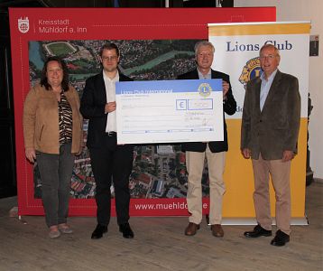 Mit einem symbolischen Spendenscheck im Wert von 2.500 Euro besuchten Dr. Walter Oberhauser, Präsident des Lions-Clubs Mühldorf-Waldkraiburg, und Werner Köhn, Sekretär des Lions-Clubs Mühldorf-Waldkraiburg, 1. Bürgermeister Hetzl. Der Erlös der Adventsverlosung des Lions-Clubs Mühldorf-Waldkraiburg, der beliebten Adventskalender-Aktion, bei der es jedes Jahr Geldpreise im Wert von über 5.000 Euro und als Hauptgewinn ein Auto zu gewinnen gibt, wird für Spendenaktionen verwendet, die satzungsgemäß an bedürftige, in Not geratene Personen vorwiegend im Landkreis Mühldorf gehen sollen. Jede Kalenderverlosung hat ein Hauptziel. Die Kalenderaktion soll bedürftigen Kindern und Jugendlichen im Landkreis Mühldorf zu Gute kommen.
