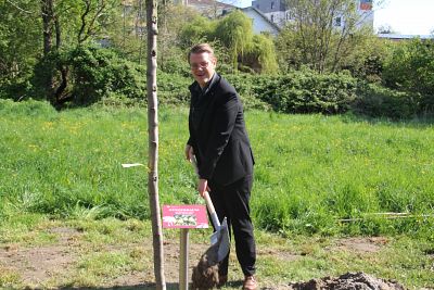 „Die gute Luise von Avrandes“, eine bekannte Birnensorte mit süßen, saftreichen Früchten pflanzte 1. Bürgermeister Michael Hetzl vor kurzem im ehemaligen Holzhauser Garten, der Streuobstwiese zwischen Innklinikum und Friedhof. Der Birnbaum soll an den Geburtsjahrgang 2022 erinnern und hätte eigentlich im Rahmen der Familienmesse gepflanzt werden sollen, die leider heuer entfallen musste. Gemeinsam mit der städtischen Gärtnermeisterin Silvia Halmbacher, Landschaftsarchitekt Johannes Hennersperger, Alexandra Vietz von der Stadtentwicklung und Mitgliedern des Bauhofes wurde der Baum vom Rathaus-Chef gepflanzt. Künftig können Spaziergänger hier neben Kirschen und Äpfeln von den bereits gepflanzten Kinderbäumen nun auch Birnen ernten.