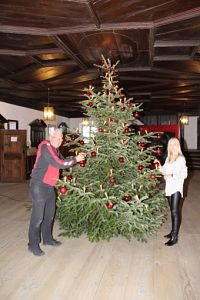 Jetzt wird´s im Mühldorfer Rathaus richtig weihnachtlich: Hausmeister Hermann Fuchsgruber und Auszubildende Emmely Kunz schmücken den schönen großen Christbaum im Flez des Mühldorfer Rathauses – traditionell mit roten Kugeln. Apropos: die neuen Mühldorfer Weihnachtskugeln in rot kann man ab sofort im Kulturamt/Touristinfo zu erwerben.