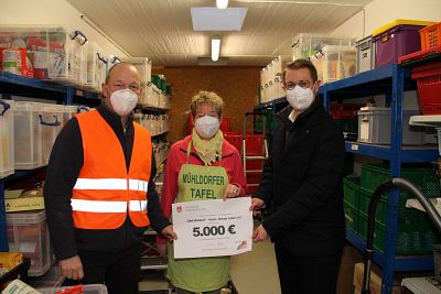 Mühldorf a. Inn. Die Kreisstadt Mühldorf a. Inn hat vor kurzem die heimischen Unternehmen dazu aufgerufen, für die Mühldorfer Tafel zu spenden. Neben der Bäckerei Bachmeier, die sich bereit erklärte, die nächsten Wochen Brot an die Mühldorfer Tafel zu liefern und die VR meine Volksbank Raiffeisenbank eG, die die Tafel über diese städtische Aktion mit einem Spendenscheck von 2.500 Euro unterstützt, hat 1. Bürgermeister Michael Hetzl zudem vor kurzem 5.000 Euro via Mühldorfer Hilfsfonds an die Mühldorfer Tafel übergeben.