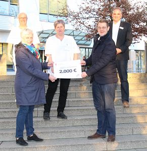 Stellvertretend für das Klinikpersonal nahmen Pflegedirektorin Annemarie Denkl, medizinischer Vorstand Dr. Wolfgang Richter und Vorstandsvorsitzender Thomas Ewald an der Spendenübergabe teil. „Ich bedanke mich auch im Namen unserer Mitarbeiterinnen und Mitarbeiter sehr herzlich für die tolle Aktion und die großzügige Spende“, so Klinik-Vorstandsvorsitzender Thomas Ewald. Die gesammelten Geschenke werden unter den Mitarbeiterinnen und Mitarbeitern verlost, die Spenden werden für Seminare verwendet.