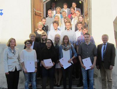 Im Rahmen einer kleinen Feierstunde lud Bürgermeisterin Marianne Zollner die besten Mühldorfer Schülerinnen und Schüler zur jährlichen Schülerehrung in den großen Sitzungssaal des Rathauses ein. Die 29 Absolventinnen und Absolventen hatten ihre Schule bzw. Ausbildung mit einer Note zwischen 1,0 und 1,5 abgeschlossen. Im Beisein von Vertretern der jeweiligen Schulen erhielten sie eine Auszeichnung in Form einer Anerkennungsurkunde und eines kleinen Geldgeschenks.