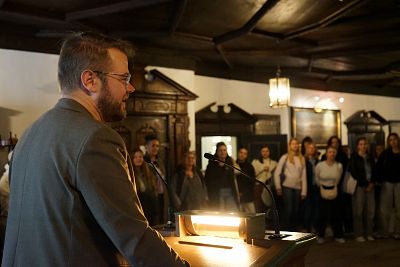 Nach der Begrüßung im Rathaus konnten die Studierenden im ersten Semester ihren Studienort besser kennenlernen. Aufgeteilt in Gruppen erkundeten sie mit Stadtführerinnen der Kreisstadt Mühldorf a. Inn die Innenstadt. Neben Stadtplatz und Rathaus ging es außerdem auf den Nagelschmiedturm. Zum Ausklang traf man sich noch im Café Orange am Stadtplatz. Der Empfang durch den Bürgermeister und die Stellvertretende Landrätin war Teil eines zweitägigen Programms zum Studienstart. Am Dienstag gab es am Campus eine Einführung ins Studium durch Hochschulleitung, Fachschaft und Studierende.