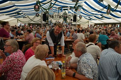 Bei Kaiserwetter ging es am heutigen Montag auf dem Traditionsvolksfest zünftig und gemütlich im Spaten-Festzelt beim „Tag der Senioren“ zu. Der Einladung der Kreisstadt Mühldorf a. Inn zum Essen, Trinken und Feiern folgten gut 3000 Bürgerinnen und Bürger, die heuer 65 Jahre alt werden oder älter sind. Die städtischen Ausgaben für das Event belaufen sich auf rund 40.000 Euro. „Dieses Geld geben wir gerne aus, weil wir genau wissen, was die älteren Generationen geleistet haben – auch für uns Jüngere“, sagte Bürgermeister Michael Hetzl. „Dafür möchte ich Ihnen bei dieser Gelegenheit meinen herzlichen Dank ausdrücken.“