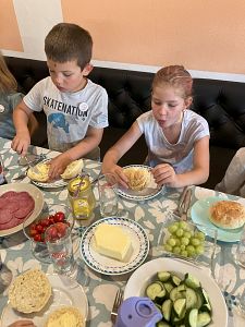 Mehl, Wasser, Hefe und Salz – aus diesen Grundzutaten haben acht Kinder im Mühldorfer Ferienprogramm Mühlix ihre eigenen Brote geknetet. Die Laibe kamen anschließend in den Erdofen des Jugendzentrums M24, wo sie goldbraun gebacken wurden. Während des Backvorgangs bereiteten die Fünf- bis Neunjährigen verschiedene Beläge für den anschließenden Brunch vor. Dabei genossen sie ihre Kreationen je nach Gusto süß oder herzhaft.