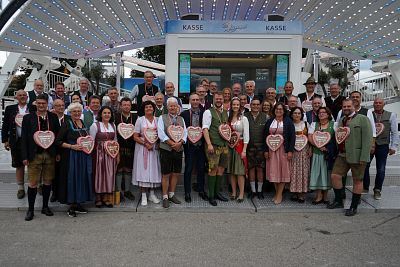 Knapp 4000 Besucherinnen und Besucher feierten auf Einladung der Kreisstadt Mühldorf a. Inn den „Tag des Landkreises“ im Spaten-Festzelt auf dem Traditionsvolksfest. Bürgermeister Michael Hetzl konnte am Dienstag unter den Ehrengästen neben Landrat Max Heimerl unter anderem die Abgeordneten Markus Saller und Sascha Schnürer sowie den Salzburger Landtagsabgeordneten Josef Schöchl begrüßen. Den Mühldorfer Stadtrat repräsentierten unter anderem Zweite Bürgermeisterin Ilse Preisinger-Sontag, Dritte Bürgermeisterin Christa Schmidbauer und Bezirksrätin Claudia Hausberger. Bürgermeister Hetzl begrüßte seinen Waldkraiburger Kollegen Robert Pötzsch für das Gemeinsame Oberzentrum und Buchbachs Bürgermeister Thomas Einwang als Kreisverbandsvorsitzenden des Bayerischen Gemeindetags stellvertretend für die vielen Gäste aus anderen Kommunen aus dem Landkreis Mühldorf und darüber hinaus. Aus dem Nachbarlandkreis Altötting war neben der stellvertretenden Landrätin Ingrid Heckner eine Reihe von Bürgermeistern zu Gast. An die Genannten und einige Dutzend weitere Bürgermeisterinnen und Bürgermeister verschenkten Bürgermeister Hetzl und Volksfestkönigin Simona Kneißl im Namen der Kreisstadt Mühldorf Volksfestherzerl, bevor es zur gemeinsamen Fahrt mit dem Riesenrad ging.