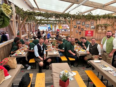 Die Kreisstadt Mühldorf a. Inn hat 15 Mitarbeiter der Ecksberger Werkstätten zu einem Dankeschön-Essen ins Innbräu-Festzelt auf dem Traditionsvolksfest eingeladen. Seit genau einem Jahrzehnt sorgt die Stiftung Ecksberg im Auftrag der Stadt für die Umbestuhlung des Stadtsaals. „Für den stets tadellosen und zuverlässigen Service wollten wir uns zum zehnjährigen Jubiläum in einem persönlichen und gemütlichen Rahmen bedanken“, erklärt Bürgermeister Michael Hetzl. „Darum haben wir unsere Helferinnen und Helfer aufs Volksfest zum Essen und Trinken, zum gemeinsamen Bummel über das Fest, zu Volksfestherzerln und gebrannten Mandeln eingeladen. Wir schätzen die Arbeit sehr, die die Ecksberger Werkstätten und die gesamte Stiftung Ecksberg leisten.“