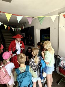 Im Rahmen des Mühldorfer Ferienprogramms Mühlix fand eine Schnitzeljagd quer durch die Stadt statt. Dabei durchforsteten drei Kindergruppen das Rathaus, um einen verlorenen Piratenschatz zu heben. Wegen der großen Nachfrage ging eine Gruppe mehr als die ursprünglich geplanten zwei auf Erkundungstour. Je rund 15 Kinder zwischen sechs und zwölf Jahren machten sich zusammen mit Bürgermeister Michael Hetzl und Schauspieler Mike Sobotka als „Käpt’n Rauschebart“ auf die Suche. Dabei mussten sie Rätsel lösen, Hinweise entschlüsseln und versteckte Orte entdecken. Neugierig erklommen sie den Nagelschmiedturm und suchten beim ehemaligen Wasserschlössl nach Spuren. Schlussendlich gab das Hexenkammerl im Rathaus den entscheidenden Hinweis preis. Beim Öffnen der Schatztruhe offenbarte sich die Belohnung: Säckchen mit großen Halbedelsteinen warteten auf die glücklichen Finder.