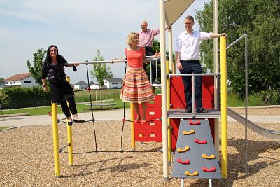 STR Dr. Wanka sagte im Namen der Kinder Danke und lobte die großzügige Gestaltung des bereits fünften Kinderspielplatzes im Bereich Mühldorf-Süd. Stadtbaumeisterin Birgit Weichselgartner stellte besonders die gelungene Mischung der verwendeten Materialien in den Mittelpunkt und lobte den hohen Spielwert der aufgestellten Geräte – hier sei für jedes Kind etwas dabei. Gemeinsam ließ man es sich nicht nehmen, gleich einmal das eine oder andere Spielgerät auszuprobieren.