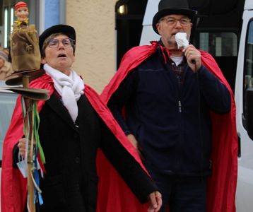 Heinz Dehmel und seine Schwester Ingried Feldmann aus Töging, ehemals Gardemädchen und Trainerin der „Hot Manner“ aus Altmühldorf, trauten ihren Augen gestern morgen nicht, als sie in der Tageszeitung lasen, dass der Faschingsauftakt coronabedingt heuer in der Faschingshochburg Mühldorf ausfallen sollte. Ausgestattet mit einer Lautsprecheranlage und einer Teufelsgeige begehrten die beiden um 11.11 Uhr Einlass ins Rathaus und forderten den Rathausschlüssel.