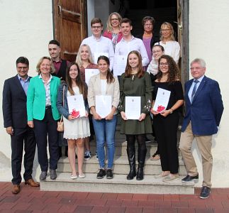 Jeweils mit einer Urkunde und einem Präsent der Kreisstadt wurden im Beisein der Schulvertreter geehrt: Nadja Jaukus, Matthias Kura, Lea Beham, Stephanie Gisbert, Georg Haselbeck und Lena Rabenbauer vom Ruperti-Gymnasium, Maximilian Herzinger von den Beruflichen Schulen Altötting, Katrin Schwögler vom König-Karlmann-Gymnasium sowie Marlene Müller vom Beruflichen Schulzentrum Mühldorf.
