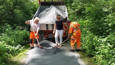 Der Fuffzgerlweg, einer der beliebten Rad- und Wanderwege im Mühldorfer Naherholungsgebiet Starkheim, der auch Teil des Naturlehrpfades ist, wurde vom städtischen Bauhof hergerichtet. Der schlechte Zustand des Weges war aufgrund der letztjährigen Waldarbeiten durch das Wasserwirtschaftsamt Rosenheim entstanden. Bürgermeisterin Zollner freut sich, dass der Fuffzgerlweg wieder genutzt werden kann. Sie wird, sobald es ihr enger Terminplan erlaubt, mit dem Fahrrad mit der Innfähre übersetzen und eine Radltour über den Fuffzgerlweg in Richtung Hammer unternehmen.