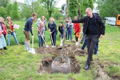 Die ersten Kinderbäume für die Geburtenjahrgänge 2018 und 2019 pflanzte Bürgermeisterin Marianne Zollner im Rahmen der Familienmesse zusammen mit Eltern und Kindern. Zu finden sind die jungen Kirschbäume auf der Obstwiese vis à vis des Haberkastens hinter den Parkplätzen am Stadtwall.